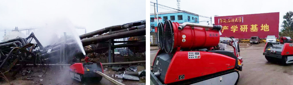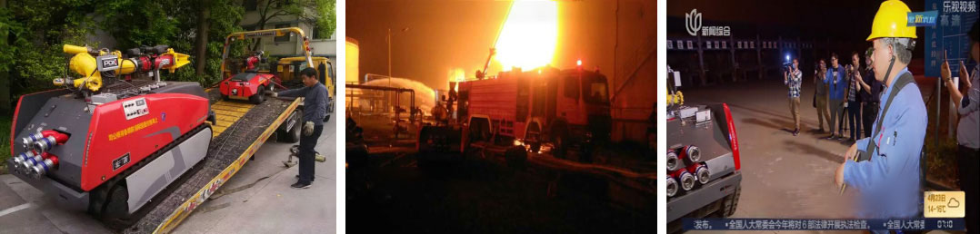 At 9:40 am on April 22, 2016, a fire suddenly occurred to the Oil Chemical Products Depot of Jiangsu Deqiao Storage Co., Ltd., located in Xingang Park, Jingjiang City, Jiangsu Province. Upon receipt of emergency reinforcement request from Shanghai Fire Brigade, the Shanghai GrumMan International Fire Equipment CO., LTD., an affiliated company of Handler, quickly organized rescue teams and a number of fire robots including high-pressure and high-flow fire robots to rush to the fire scene to participate in the fighting.