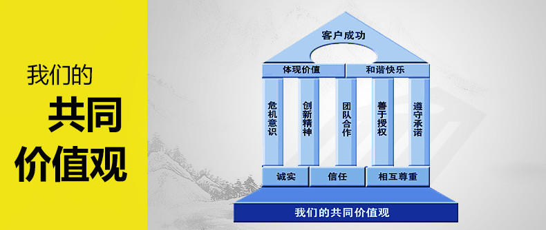 “危機(jī)意識、創(chuàng)新精神、團(tuán)隊(duì)合作、善于授權(quán)和遵守承諾”是我們事業(yè)成功的支柱。